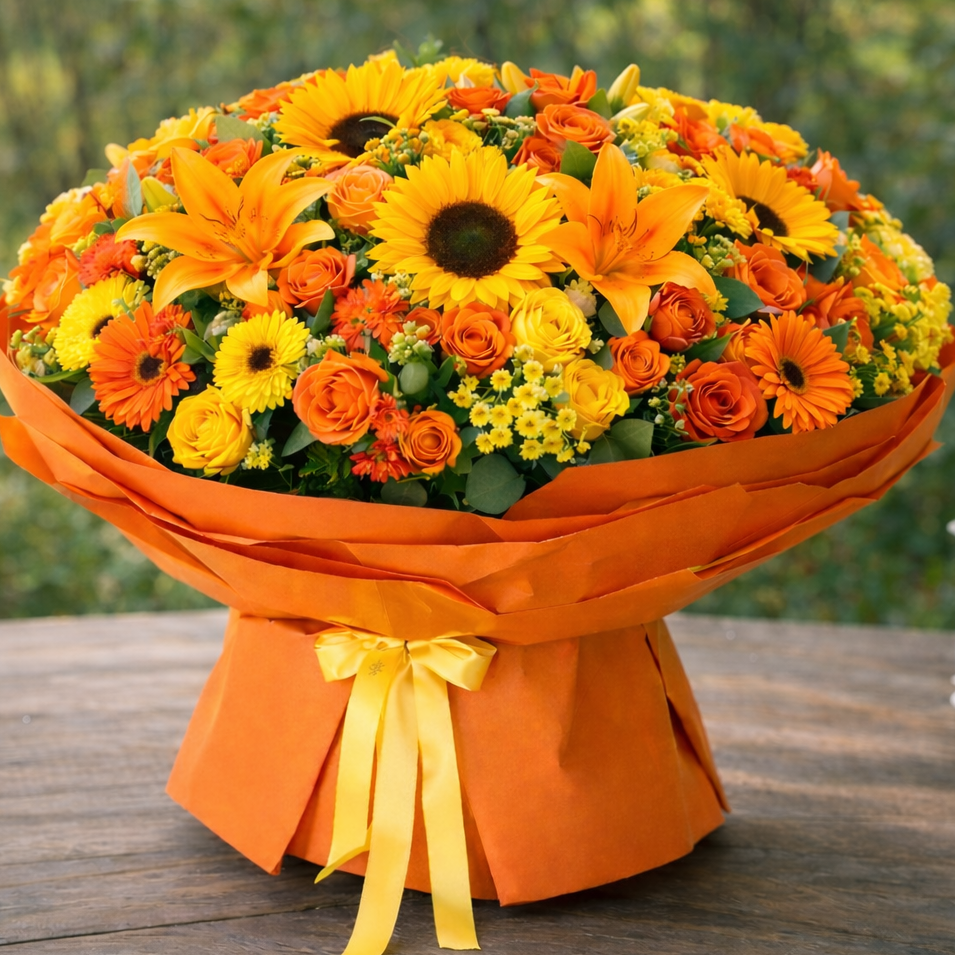 A luxurious, statement floral arrangement designed using the freshest premium seasonal blooms. Measuring approximately 60 cm high and 60 cm wide, this one of a kind arrangement is created at our florist’s discretion, allowing us to select the best flowers available on the day and design something truly special.